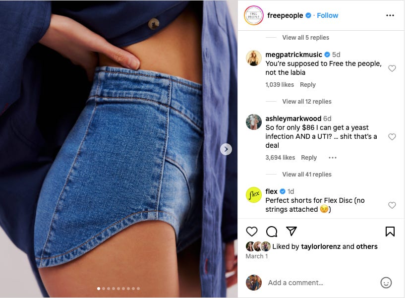 ‘Tis hot where I am so I’ve got my terrible cut-off jean shorts on and want to remind you that shorts come in all shapes and sizes including these from Free People which unlocked many, many feelings across the internet.